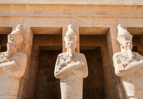Aswan was the source of ancient Egypt’s finest granite, used to make statues and embellish temples, pyramids, and obelisks. The large unfinished obelisk in the Northern Quarries has provided valuable insight into how these monuments were created, although the full construction process is still not entirely clear. Three sides of the shaft, nearly 42m long, were completed except for the inscriptions. At 1168 tonnes, the completed obelisk would have been the single heaviest piece of stone the Egyptians ever fashioned.