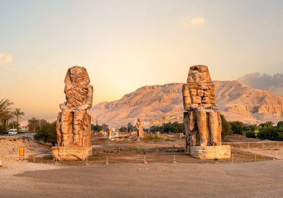 Massive pair statues Know as the Colossi of Memnon, Rising about 18 M from the plain, They are the remains of what once the largest complex on the west bank, Built by Amenhotep the Third