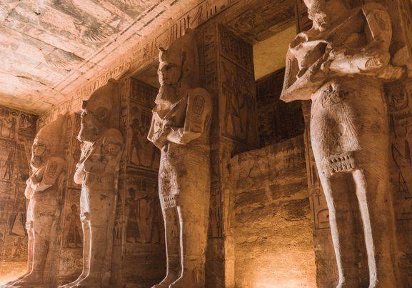 The two temples of Ramses the second and the Queen Nefertari were carved out of the Mountain on the west bank of the Nile between 1274 and 1244 B.c, The Great Temple was dedicated to Ramses the second, Ra-Harakhty, Amun Ra and Ptah, with 4 Colossal statues,The second temple was dedicated to The Queen Nefertari and Goddess Hathor,the two temples were dismantled stone by stone and rebuilt on higher ground,The preservation of the two temples of Abu Simbel must Rank as the greatest Achievement of the Unesco